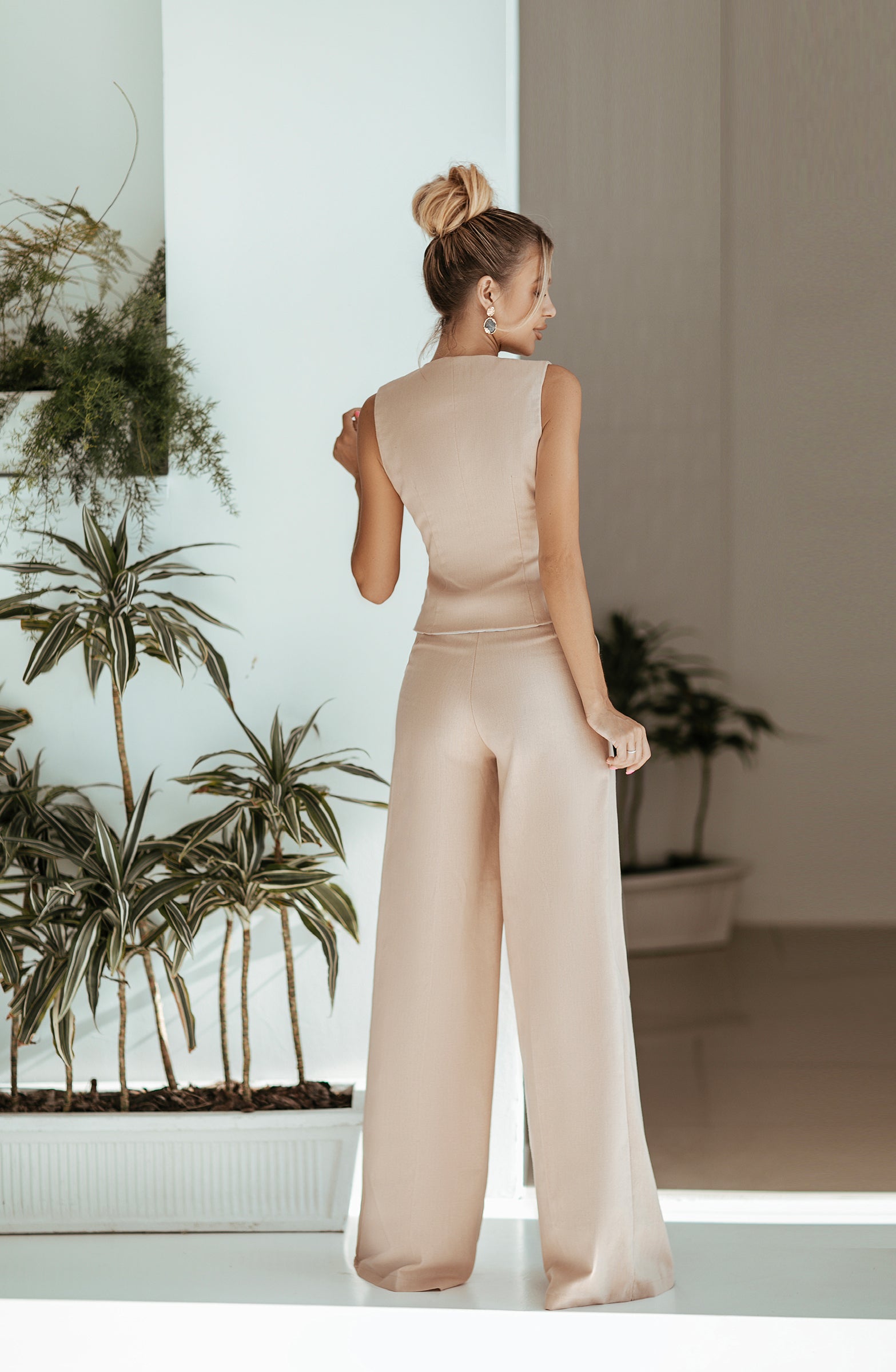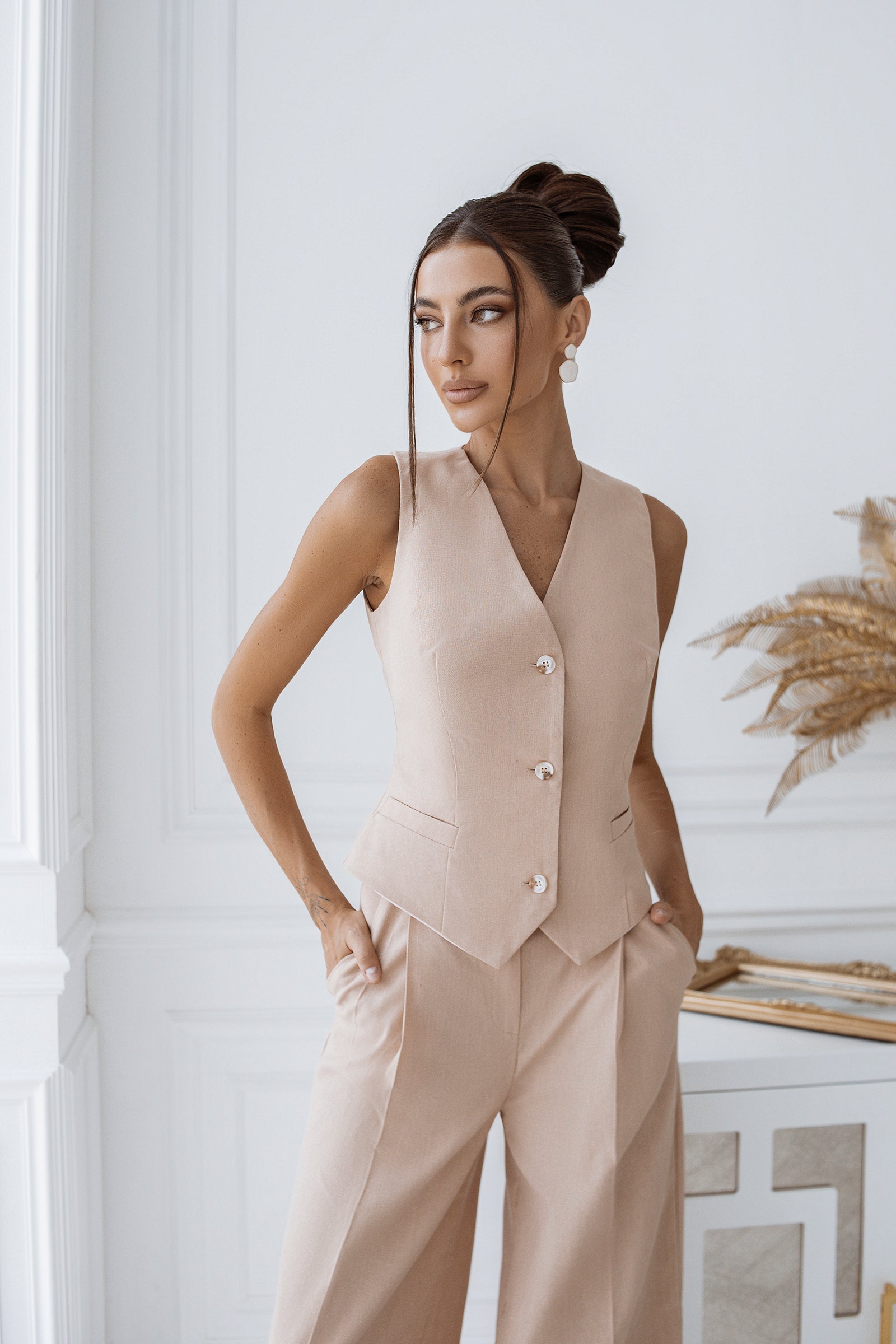 Beige Formal Vest & High Waist Pants