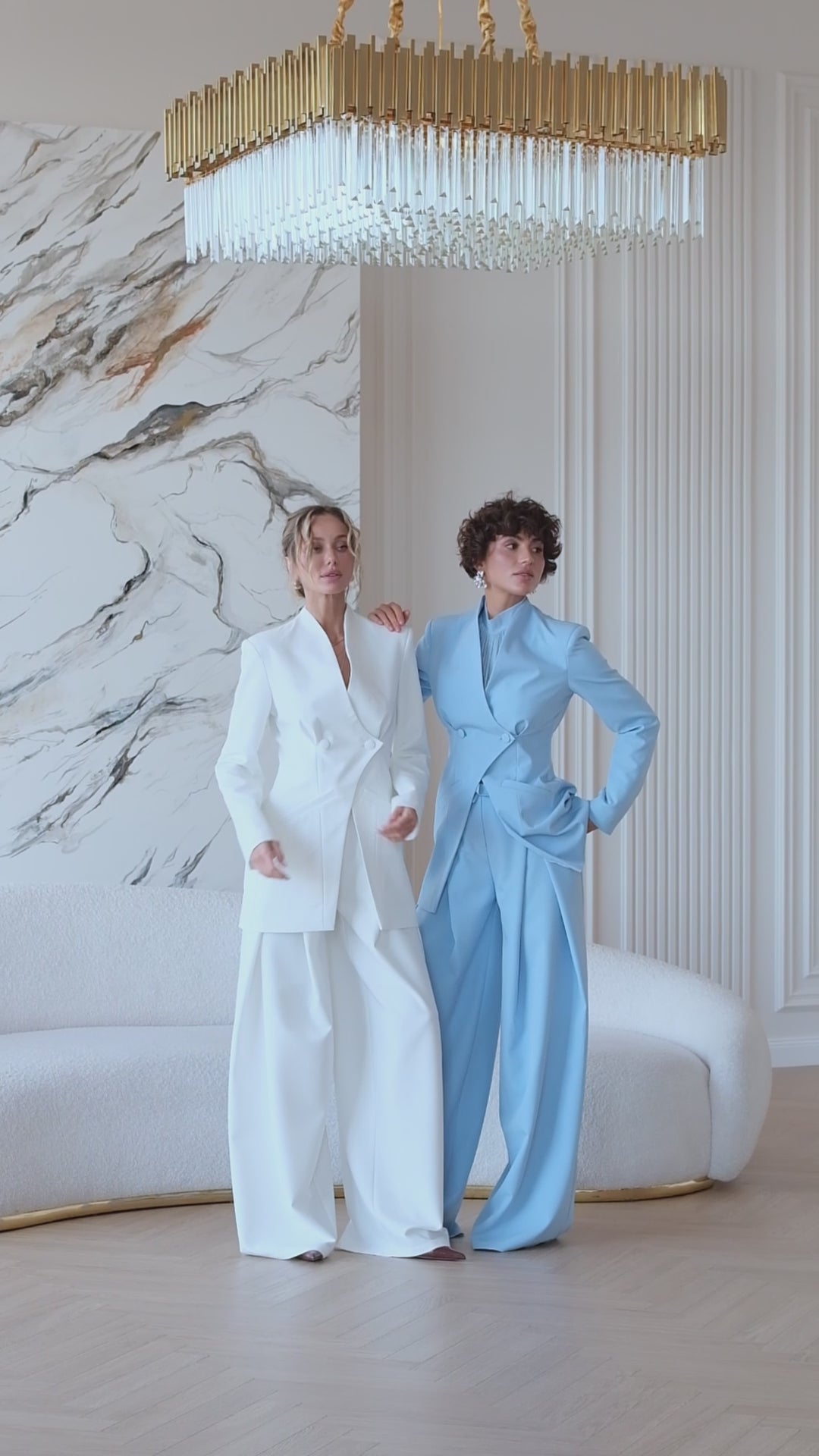 Avra Sky-Blue Asymmetric Double-Breasted Longline Blazer Suit 2-Piece