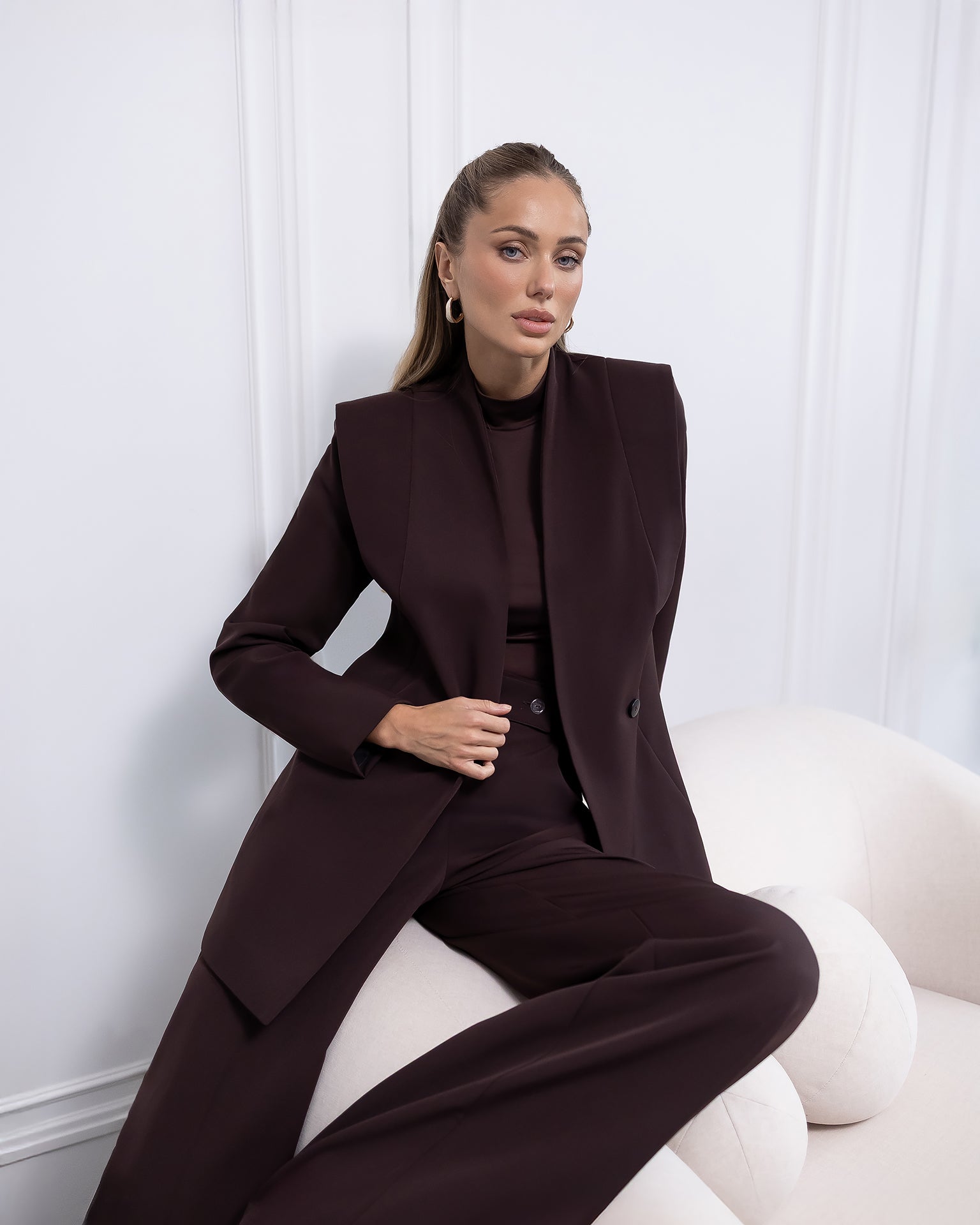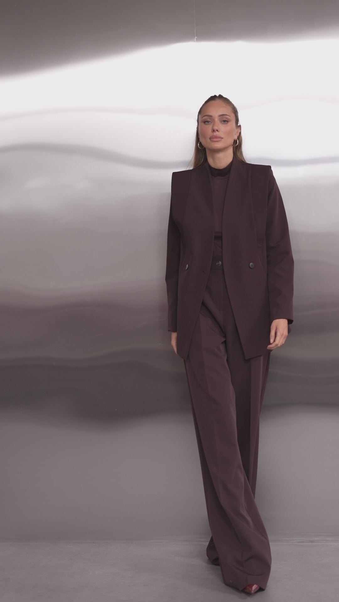 Elara Brown Collarless Double-Breasted Suit 2-Piece