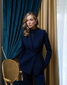 Elara Navy Collarless Double-Breasted Suit 2-Piece