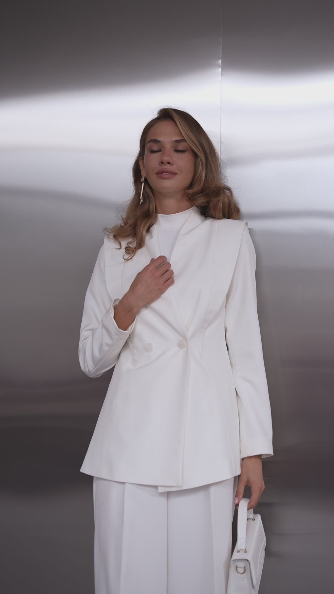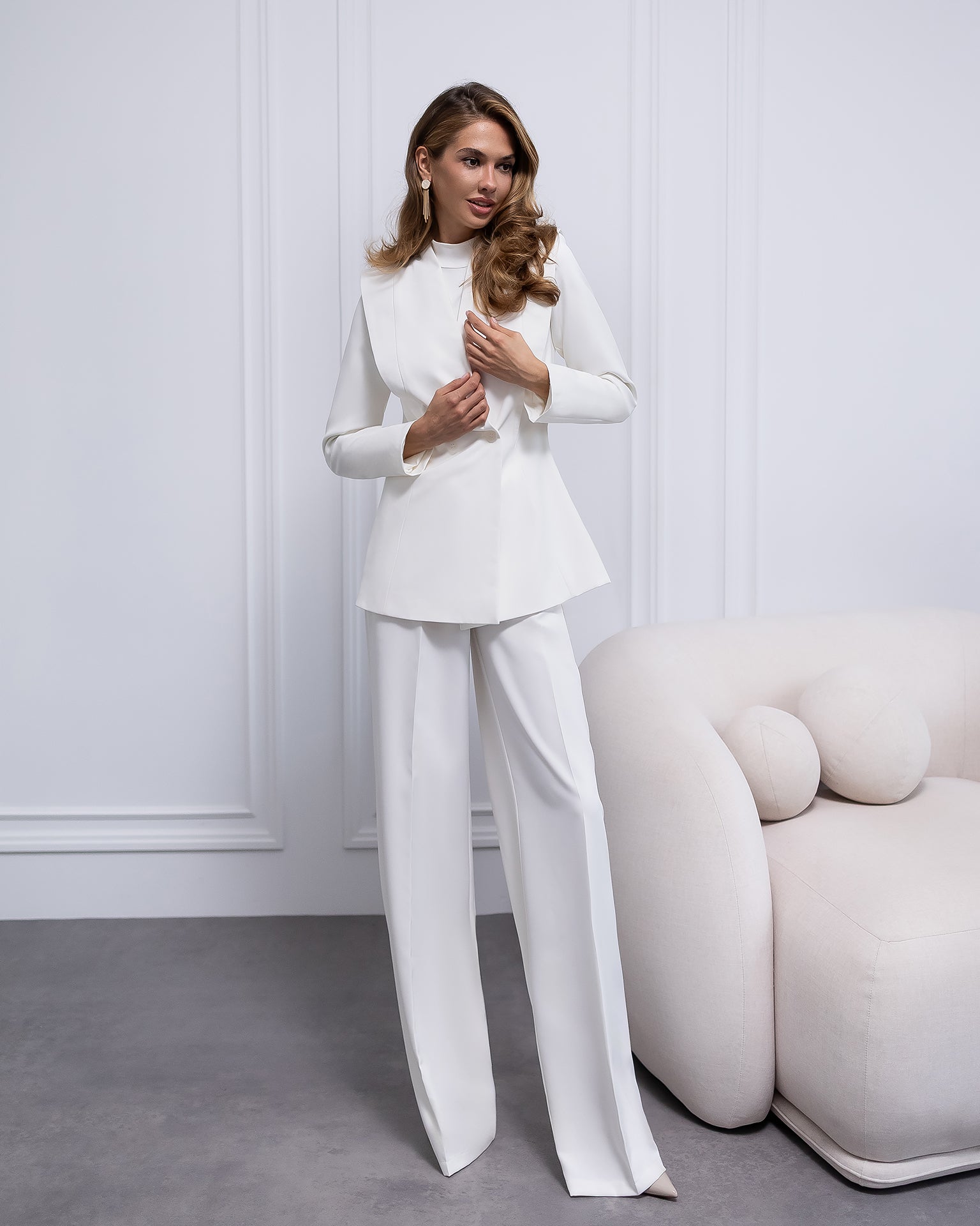 Elara White Collarless Double-Breasted Suit 2-Piece