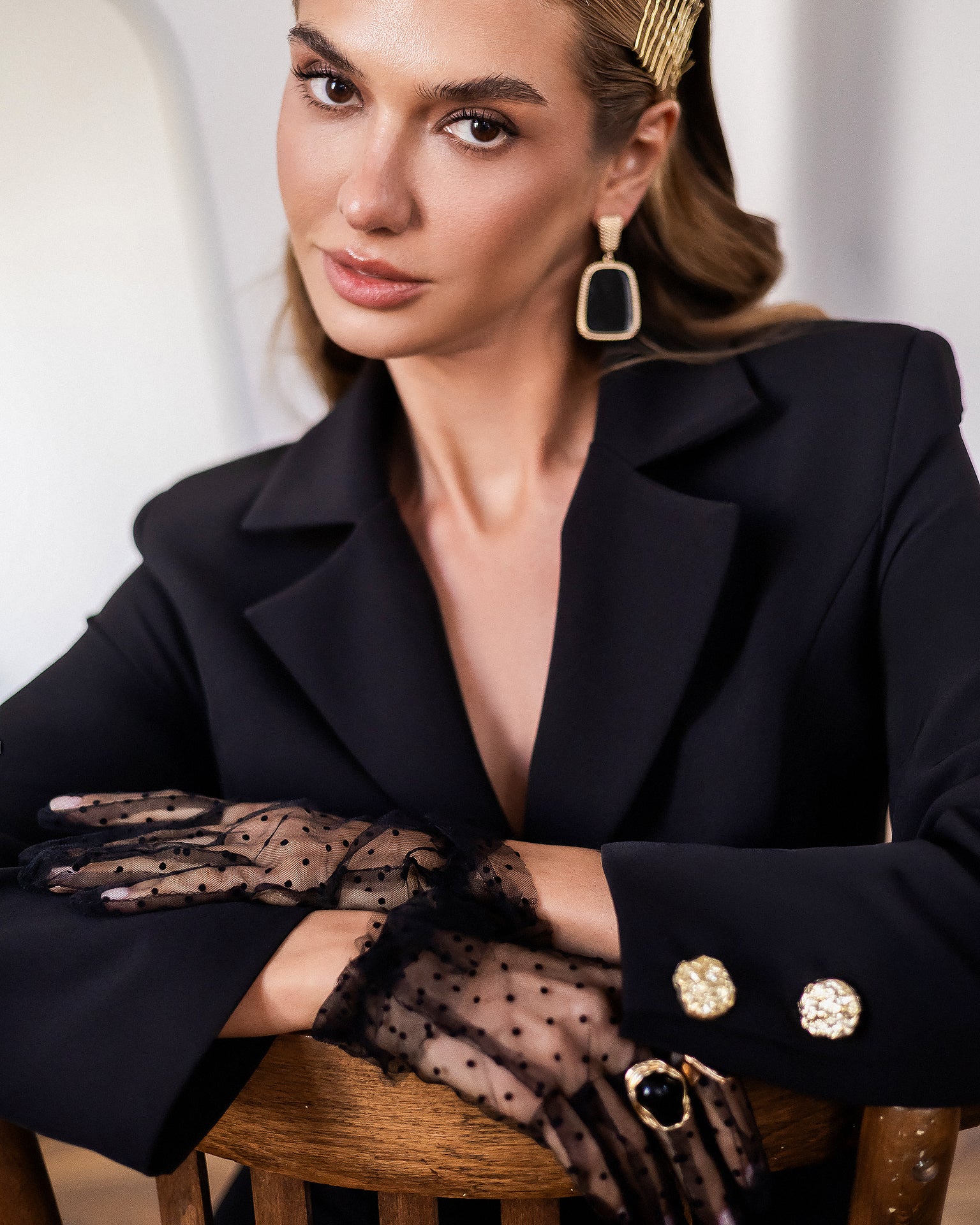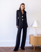 Paola Black Single-Breasted Gold-Button Suit 2-Piece