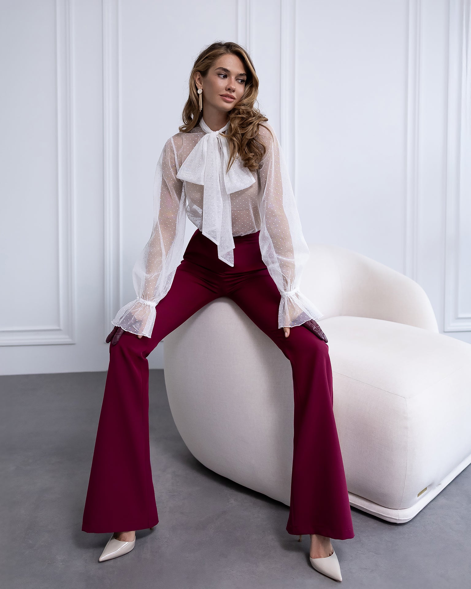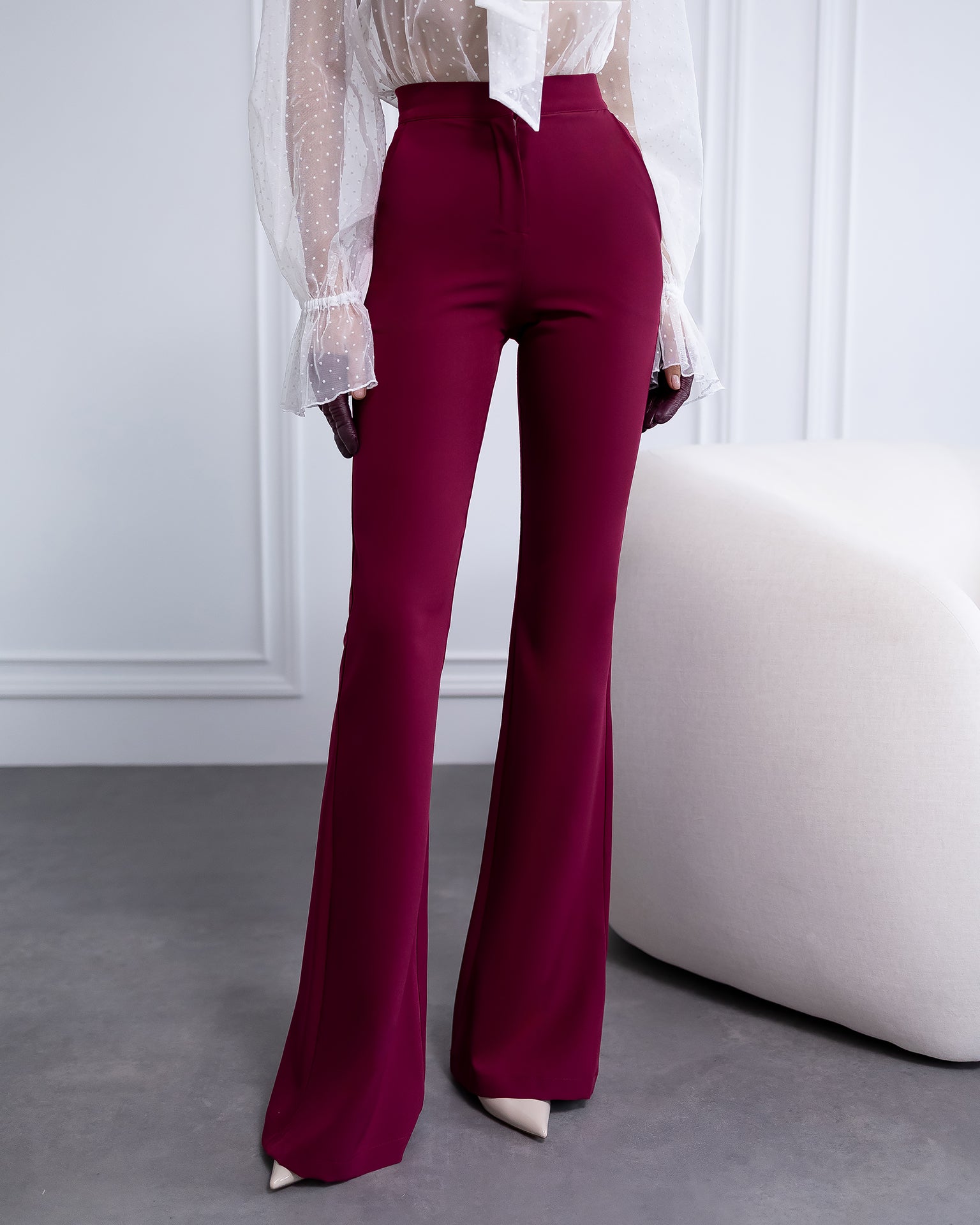Bordeaux High Waist Fitted Flared Pants