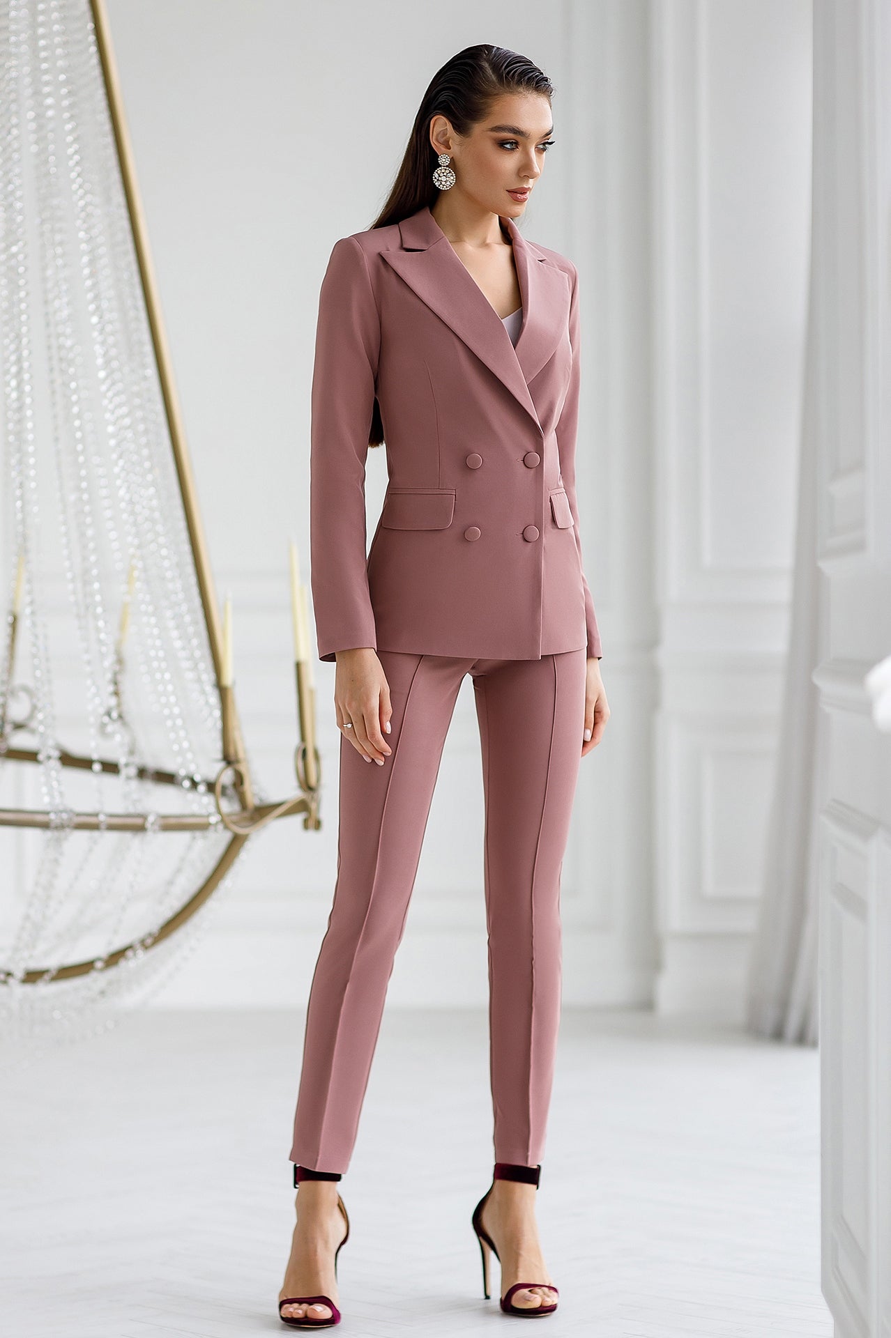 - Included: Double breasted blazer, pants