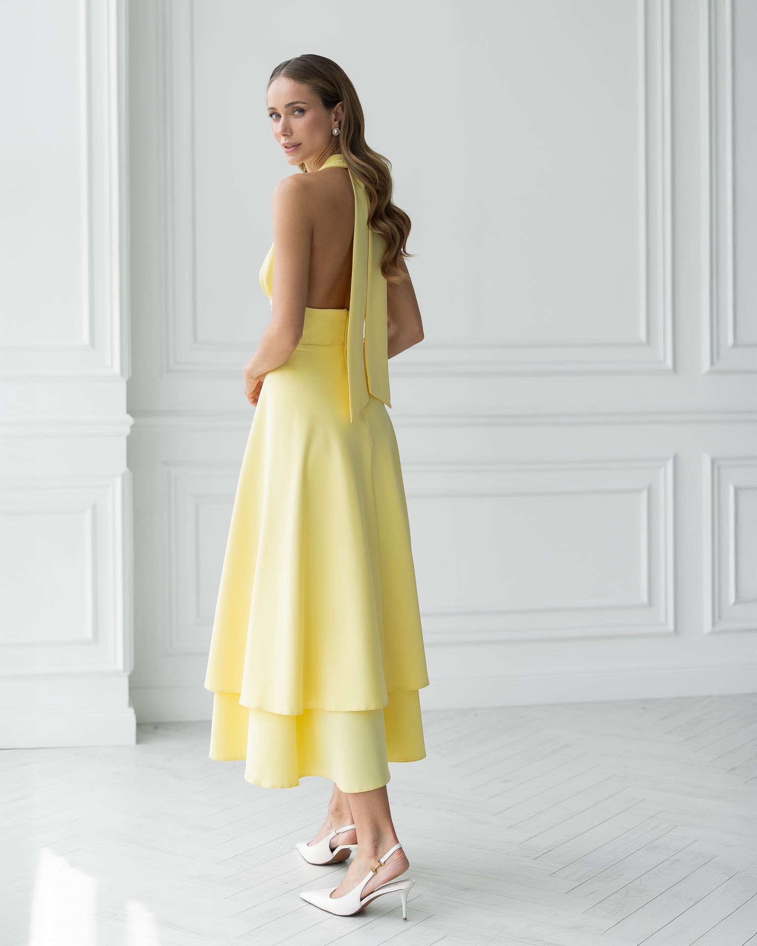 Gloria Yellow Open-Back Halter-Neck Midi Dress