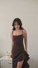 Bianca Brown Asymmetric Ruffled Slip Midi Dress