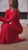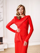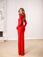 Éva Red Asymmetric Draped Open-Back Maxi Dress