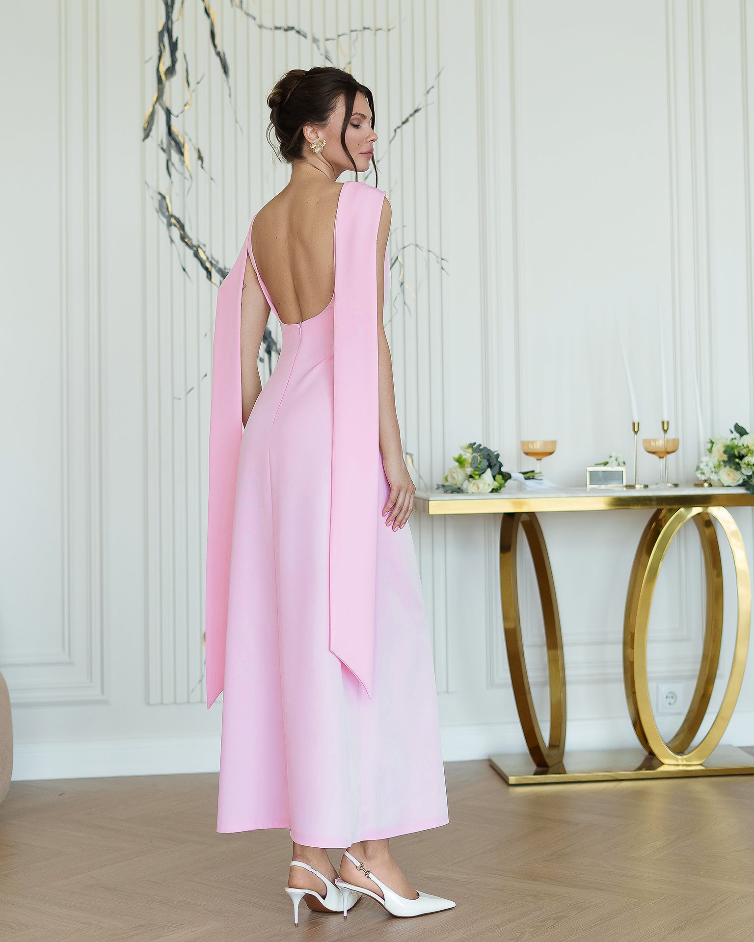 Pink Boat-Neck Sleeveless Open-Back Maxi Dress