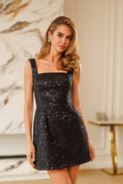 Alexa Black Sequin Square-Neck Sequin Mini Dress
