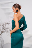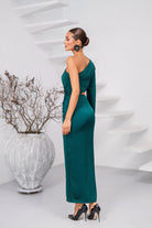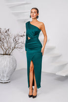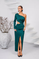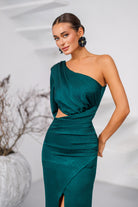 Alexa Emerald Satin One-Shoulder Cut-Out Midi Dress