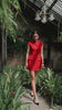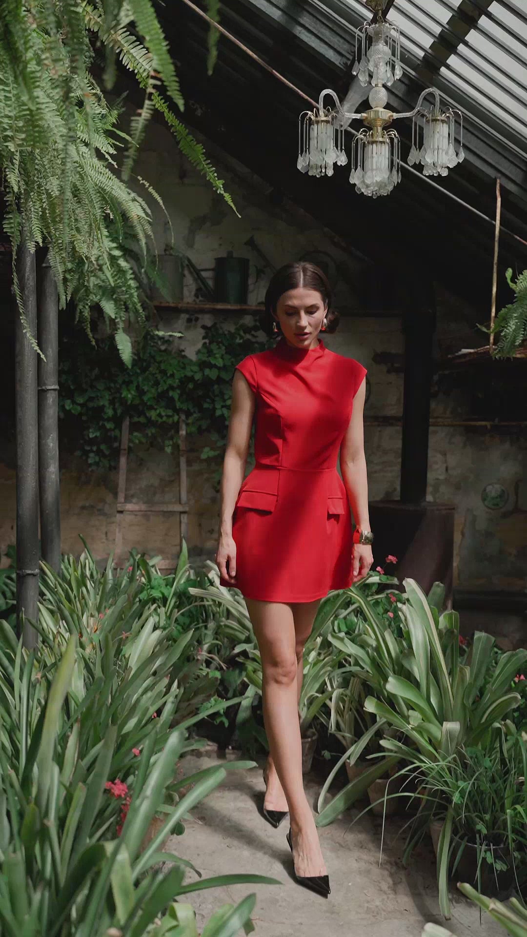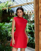 Aurora Red High-Neck Pocket Detail Mini Dress