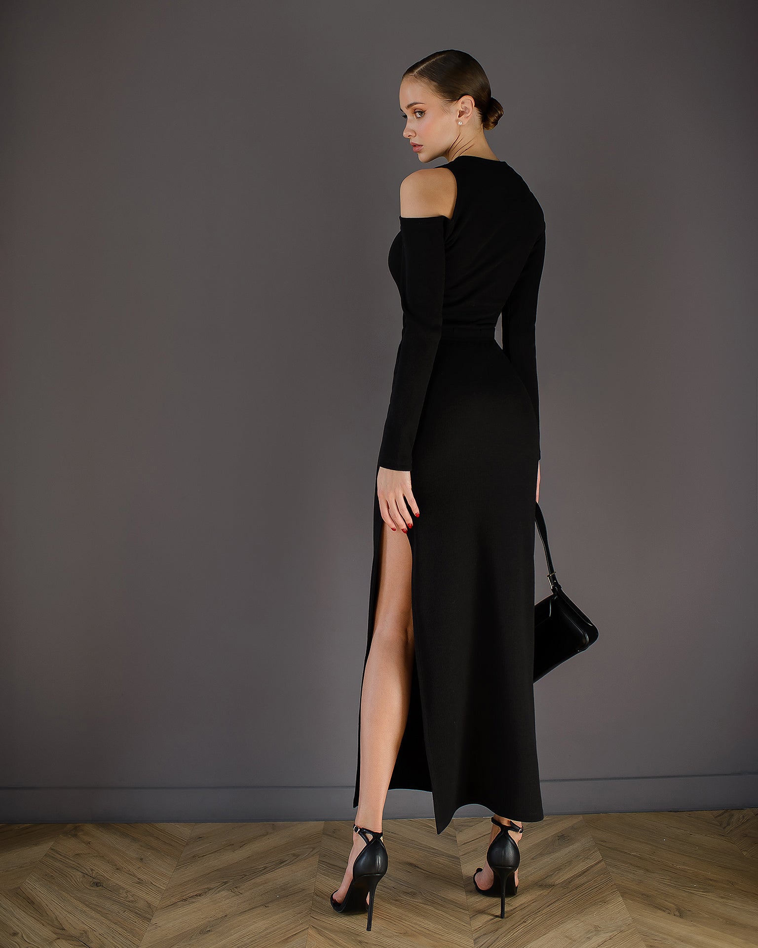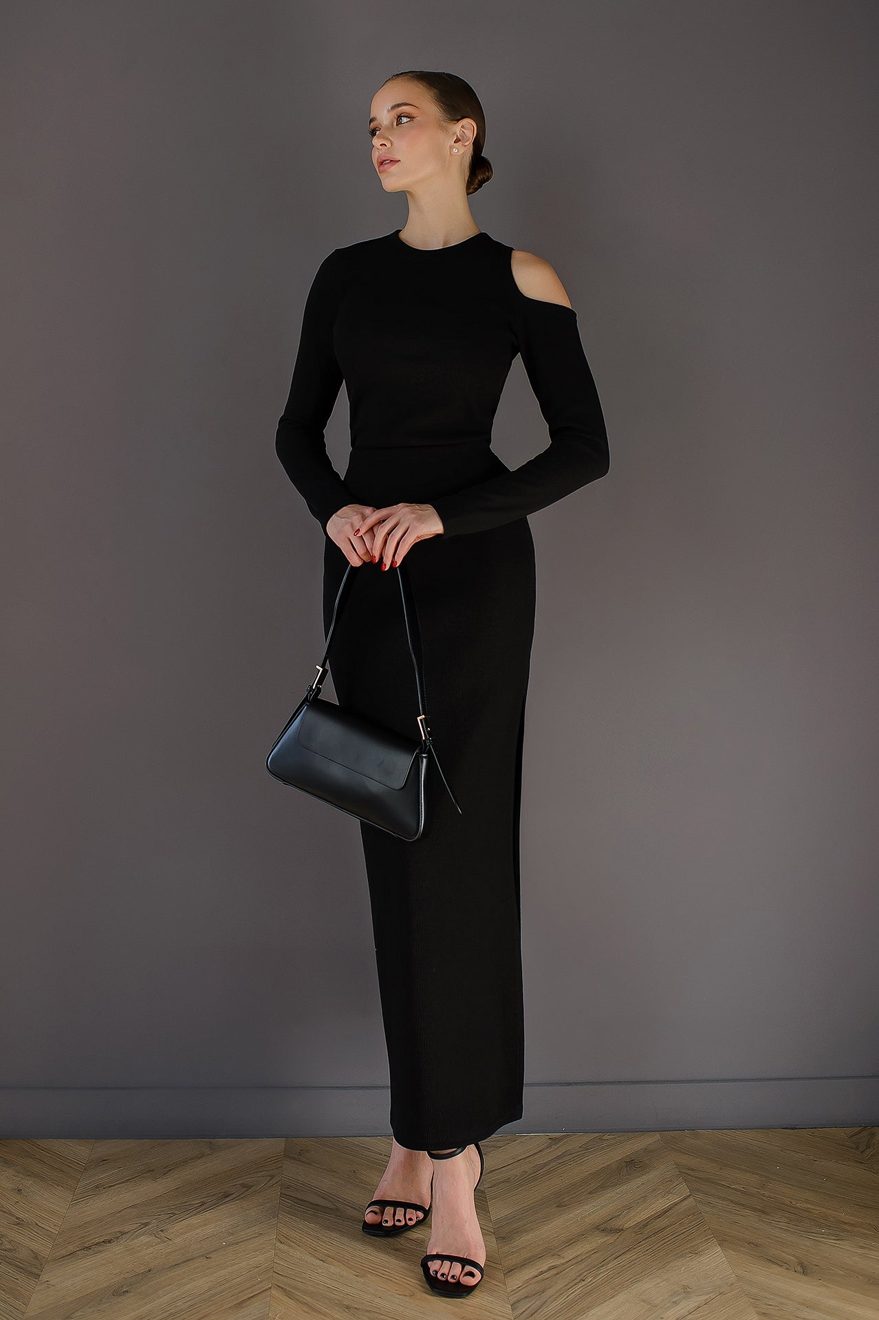 Black Cut-Out Long Sleeve Midi Dress