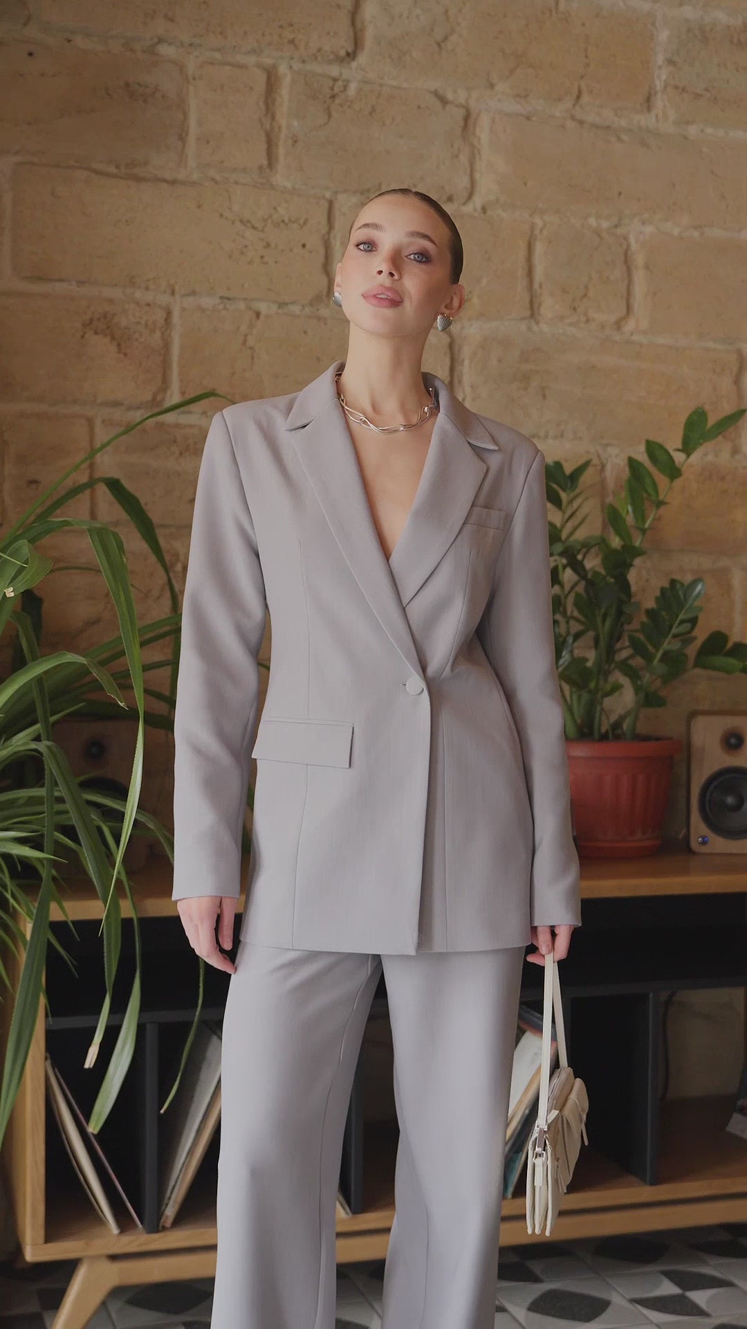 Grey Double-Breasted Style Relaxed Fit Suit 2-Piece