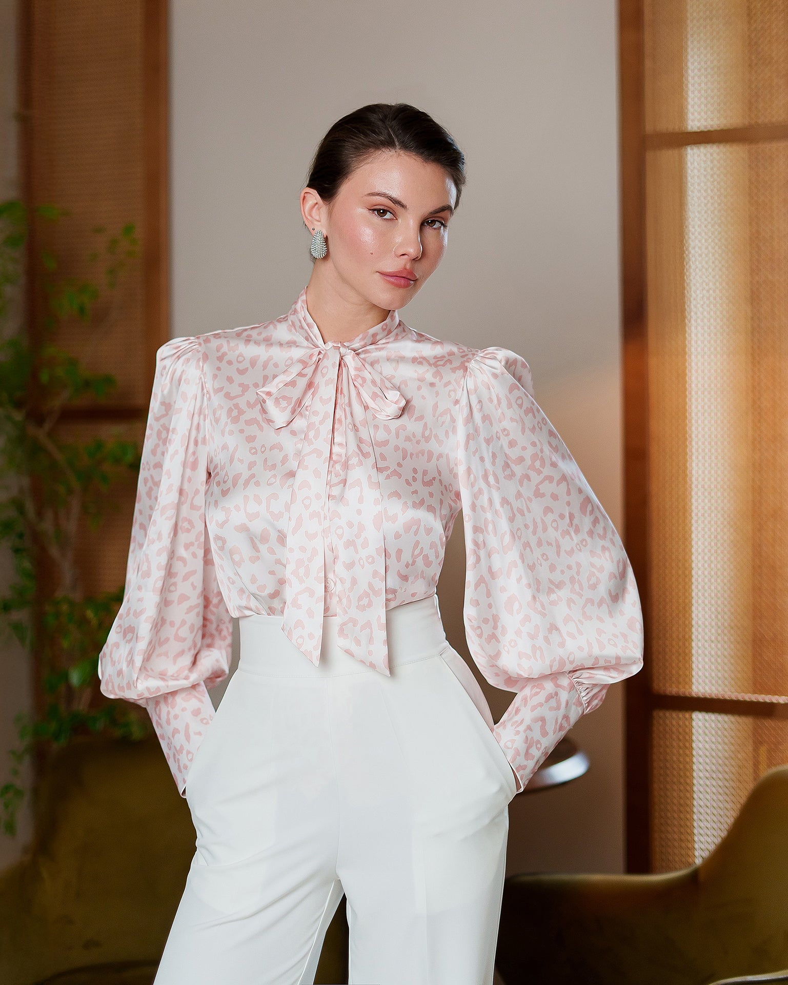 White High-Waist Straight-Leg Cuffed Hem Pants