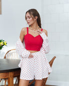 White-Red Polka Dot Blouse & Shorts 2-Piece Set