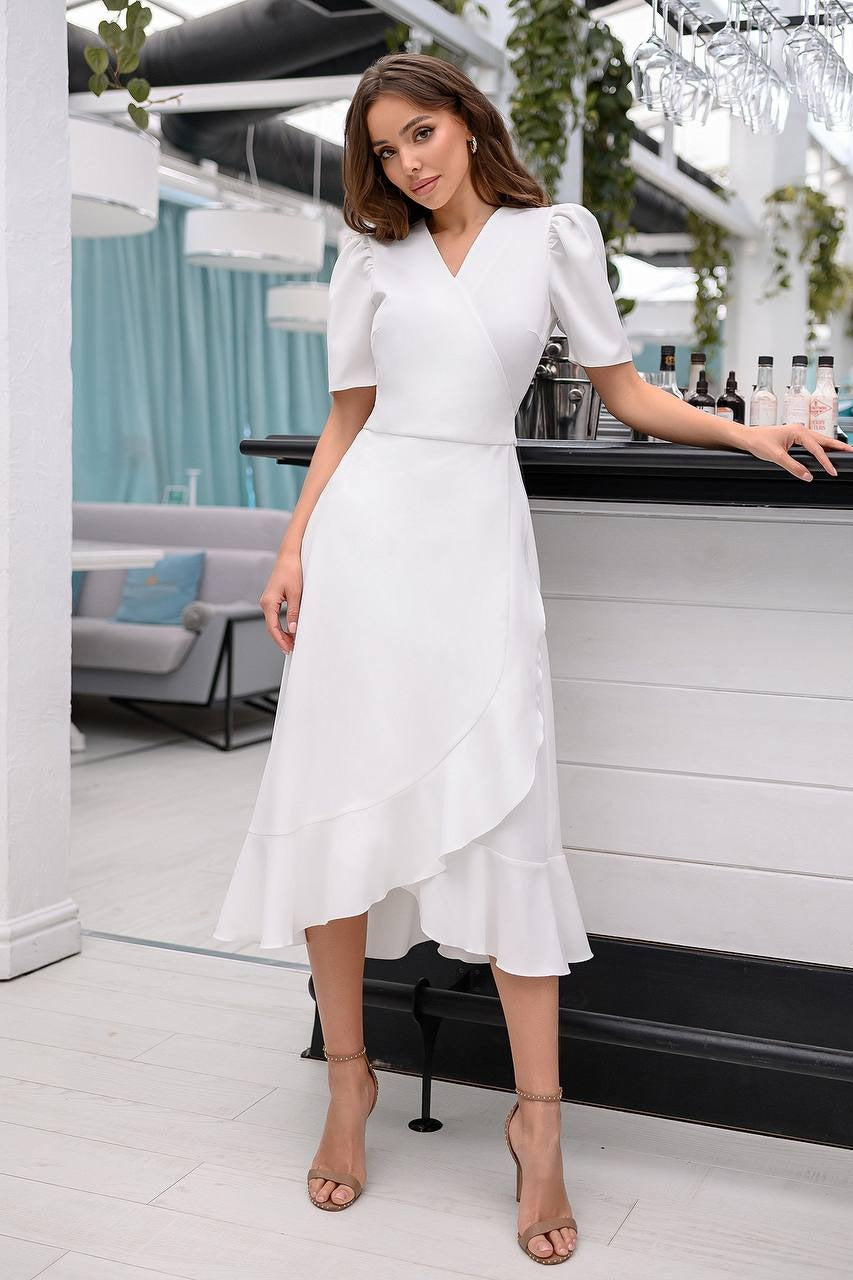 White Wrap Short Sleeve Midi Dress