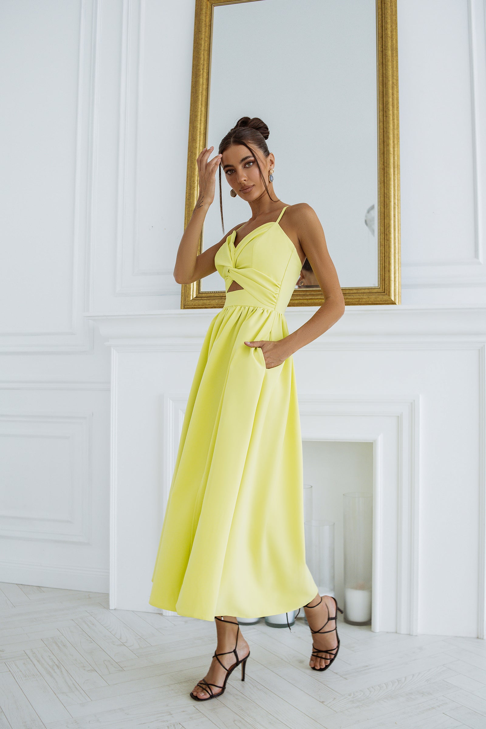 Yellow Sweetheart Cut-Out Midi Dress